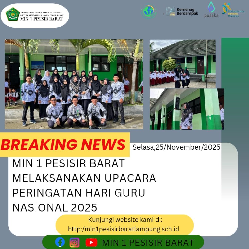 MIN 1 Pesisir Barat (Humas) — Madrasah Ibtidaiyah Negeri (MIN) 1 Pesisir Barat melaksanakan upacara Peringatan Hari Guru Nasional pada Senin (25/11) dengan penuh khidmat.